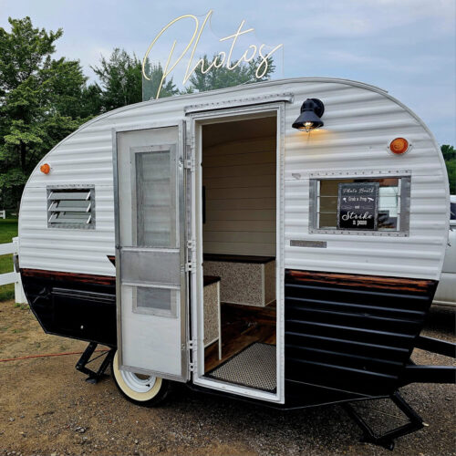 “Enjoy a photo taking experience like never before with our Candid Camper photo booth! With the stunning exterior and charming interior, she makes an excellent focal point at your next event! Keep your guests talking with this unique experience that will always be remembered! The Candid Camper photo Booth will capture those beloved fun-loving pictures of all your guests that your professional photographer may miss! Join us for this fun photo booth experience and Book Now!”